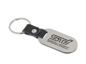 Made from 1/8 thick 304 stainless steel- with a brushed finish and permanent black laser etched graphics. Made from 1/8-inch thick 304 stainless steel, with a brushed finish and permanent black laser etched STI logo.. Key Chain SPT and STI Logo. Key fob SPT and STI logo.